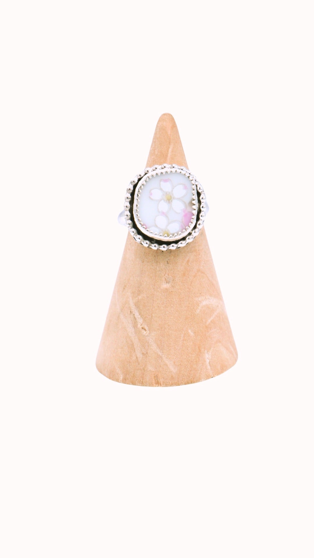 Sterling silver Hand shattered china ring.