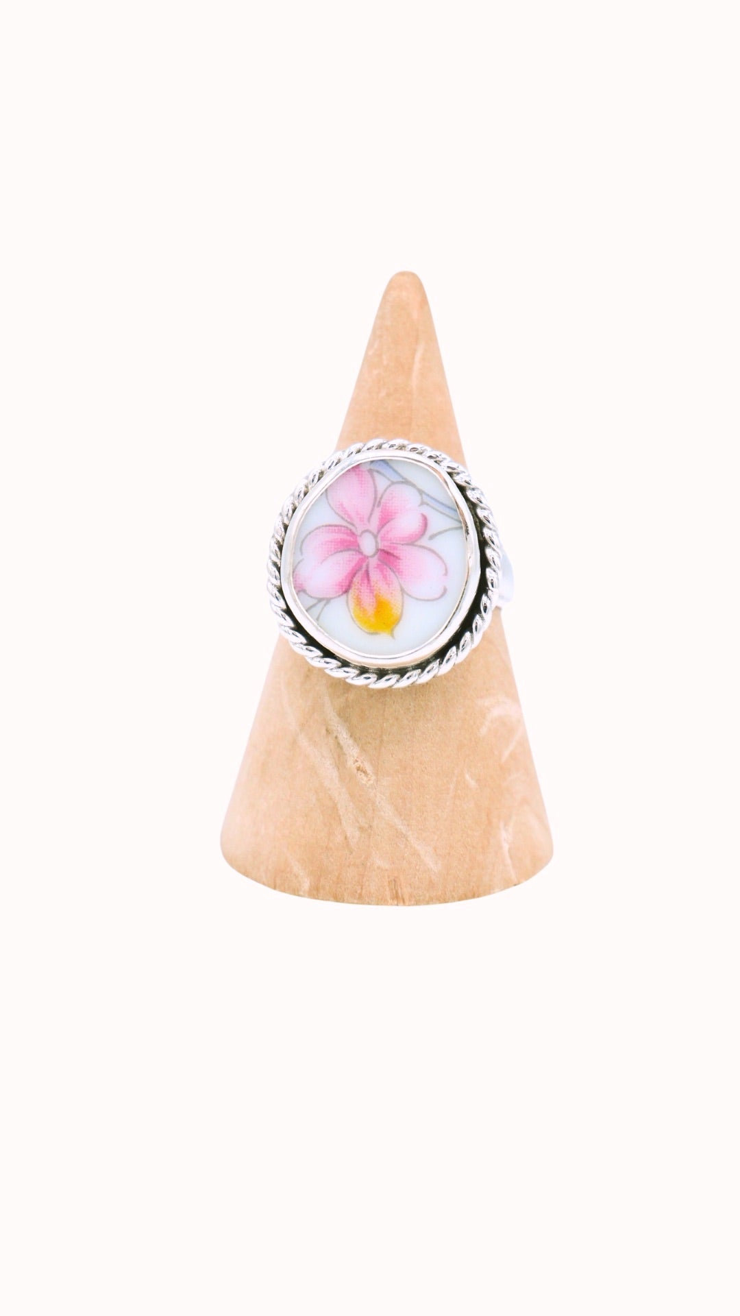 Sterling silver Hand shattered china ring.